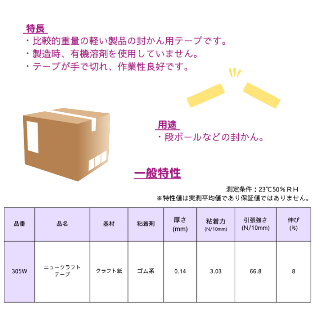 ニュークラフトテープ305W 白(50mm幅 X 50m巻)1箱50巻入